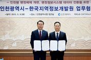 [한국기자연대] 인천광역시는 9월 9일 시청 접견실에서 한국지역정보개발원 상호기관 간 업무협약을 체결했다고 밝혔다. 이번 협약은 인천형 행정체제 개편에 따라 행정정보시스템 데이터 전환의 성공적인 수행을 위해 인천시와 한국지역정보개발원(KLID)이 힘을 모으는 자리였다. 협약식에는 유정복 인천시장과 박덕수 한국지역정보개발원장이 참석했으며, 협약의 주요 내용은 행정정보시스템(지방세, 주민전산 등 397종)에 포함된 85억 건의 표준코드(행정동, 법정동, 기관, 도로명 코드) 전환을 성공적으로 추진하고, 개편 이후 서비스 안정화를 지원하기 위해 긴밀한 협력 관계를 유지하는 것이다. 인천형 행정체제 개편은 지난해 1월 제정된 인천광역시 제물포구·영종구 및 검단구 설치 등에 관한 법률에 따라 2026년 7월 1일부터 본격 시행된다. 이에 따라 현 중구·동구·서구는 각각 제물포구·영종구·검단구로 개편되며, 서구는 서해구로 명칭을 변경하여 새롭게 출범할 예정이다. 이번 개편은 기존에 전례가 없는 통합, 조정, 분리, 명칭 변경이 동시에 이뤄지는 복합형 사례로 풍부한 경험과 기술을 갖춘 한국지역정보개발원과의 협력