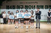 [한국기자연대] 인천 서구는 지난 6일 오후 2시, 서구청소년센터 공연장에서 ‘제4회 서구 청소년 정책마켓’이 진행됐다고 8일 밝혔다. ‘청소년 정책마켓’은 지정된 주제 아래 청소년이 직접 지역 정책을 제안하는 행사로, 이날 행사에는 900여 명의 청소년과 지역 주민이 참여했다. 청소년들은 올해 정책마켓 지정주제인 ‘기후위기 시대, 청소년이 바라는 녹색정책’과 자유 주제 ‘청소년이 만들고 싶은, 내가 살고 싶은 서구’를 바탕으로 지난 5월 19일부터 8월 10일까지 정책 제안서를 제출했다. 이 중 예선 심사를 거쳐 선발된 6개 팀이 본선에 올랐으며, 사전 온라인 투표와 현장 청중평가단 점수를 합산해 우수 정책이 선정됐다. 시상식에서는 대상(서구청장상), 최우수상(서부교육지원청 교육장상), 우수상(서구의회 의장상), 장려상(서구시설관리공단 이사장상) 등 총 6개 팀과 우수발표자 개인에게 표창이 수여됐다. 강범석 서구청장은 “청소년 여러분이 보여준 용기와 열정, 그리고 인내와 화합이 앞으로 성장해 나가는데 큰 자산이 될 것”이라며 “미래에 누구보다 빛나는 어른이 될 것이라 믿는다”라고 축