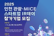 [한국기자연대] 인천광역시와 인천관광공사는 오는 10월 28일에 개최되는 ‘2025 인천 관광・마이스(MICE) 스타트업 투자유치 설명회(IR 데이)’참가기업을 오는 9월 23일까지 모집한다고 밝혔다. 올해로 세 번째를 맞는 이번 행사는 관내 성장 잠재력을 갖춘 관광・회의·포상관광·컨벤션·전시(MICE) 분야 유망 신생기업(startup)을 발굴하고 투자유치 역량을 강화와 투자유치 기회 제공을 목표로 한다. 공모를 통해 선정된 기업은 투자유치 설명회에 앞서 2주간 투자유치사업계획서 고도화 컨설팅, 투자유치(IR) 피칭 집중 훈련 등을 지원 받는다. 또한, 설명회에서 최종 우수기업으로 선정될 경우 최대 1,500만 원의 상금이 수여되며 투자사와 네트워킹을 통해 후속 투자유치 기회도 제공된다. 참가 자격은 인천에 소재한 창업 7년 이내 관광·마이스 분야 스타트업이며 자세한 내용은 인천관광기업지원센터 누리집에서 확인할 수 있다. 유정복 인천광역시장은 “이번 관광·마이스 투자유치 설명회를 통해 혁신적인 아이디어와 기술력을 보유한 스타트업들이 투자자들과 직접 만나 도약할 수 있는 기회가 되길 바