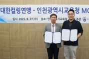[한국기자연대] 인천광역시교육청은 27일 대한컬링연맹과 읽걷쓰 기반 학교체육 활성화와 플로어컬링 교육 프로그램 확산을 위한 업무협약을 체결했다. 이번 협약식에는 대한컬링연맹 한상호 회장과 인천컬링연맹 이상일 회장이 함께해 학교체육 활성화를 위한 플로어컬링 종목의 저변 확대에 뜻을 모았다. 이번 협약에 따라 양 기관은 관내 초등학교를 대상으로 플로어컬링 체험 프로그램을 기획·운영하고, 교사 대상 직무연수와 강사 지원을 통해 학교체육 수업 및 방과후 프로그램을 활성화할 계획이다. 주요 협약 내용은 ▲플로어컬링 체험프로그램 운영 ▲교육자료(교안·영상·콘텐츠) 공유 ▲교사 대상 직무연수 및 실습형 워크숍 공동 운영 ▲‘1·1·1 스포츠 프로젝트’ 강사 지원 ▲관련 사업 협력 등이다. 도성훈 교육감은 “학생들이 다양한 체육 활동을 경험할 기회가 확대되길 바라며, 건강한 성장을 위한 학교체육 환경을 마련하겠다”고 말했다.