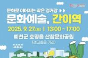 [한국기자연대] (재)예천문화관광재단은 27일, 예천군 호명읍 산합문화공원(걷고싶은 거리)에서 ‘문화예술, 간이역’ 9월 프로그램을 운영한다. 이번 9월 프로그램은 기존의 실내 중심 운영에서 벗어나 야외 무대로 공간을 옮기고 프로그램 구성도 한층 다채롭게 확대해 선보인다. 주요 프로그램으로는 ▲싱어송라이터 현서와 할순이 꾸미는 청춘콘서트, ▲가족 단위 관객을 위한 마술과 버블쇼, ▲환경문제 인식을 높이는 체험형 콘텐츠 ‘리사이클 정류장’, ▲감성을 자극하는 독서 프로그램 ‘북적북적 북크닉’이 준비된다. 또한 전통과 이색 의상을 직접 입어볼 수 있는 ‘내 맘대로 옷장’, 추억을 남길 수 있는 ‘인생네컷 사진관’, 사연을 나누는 ‘마법의 우체통’ 등도 마련돼 다양한 즐길 거리를 선사한다. 특히 이번에는 반려동물과 함께 참여할 수 있는 교감형 프로그램이 새롭게 추가돼, 반려인과 가족 모두가 일상 속에서 위로와 활력을 얻을 수 있는 시간을 마련할 예정이다. 김학동 이사장은 “문화예술, 간이역이 군민 누구에게나 열려 있는 쉼터 같은 프로그램이 되길 바란다”며, “앞으로도 다양한 세대가 함께 즐기