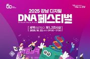[한국기자연대] 꿈이 모이는 도시, 미래를 그리는 강남구가 오는 10월 22일 오전 9시부터 오후 5시까지 세텍(SETEC) 제1‧2전시실에서 ‘2025 강남 디지털 DNA(Dream New Area) 페스티벌’을 개최한다. 구는 2023년부터 ‘학교로 찾아가는 디지털 미래인재’ 교육 과정을 개발해 운영해 오고 있으며, 여기에 특수학교를 포함한 관내 61개 초·중학교가 참여하고 있다. 올해 상반기에는 42개교 학생 7,300여 명이 이 교육을 이수했다. 이번 페스티벌은 이러한 교육 성과를 공유하고, 학생들이 익힌 기술을 선보이며 미래 기술에 대한 관심을 확장할 기회로 기획됐다. 특히 올해는 개청 50주년을 기념해 프로그램 규모를 대폭 확대해 초·중학생 약 3,500명이 참여할 예정이다. 페스티벌은 크게 ▲AI 경진대회 ▲50주년 기념 AI 체험·전시존 ▲진로직업·미래기술‧평생학습 체험부스 ▲특별강연으로 구성됐다. AI 경진대회는 ‘상상과 기술이 만나는 곳, 2025 강남 디지털 미래인재 챌린지’라는 이름으로 개최되며, 초등학생을 대상으로 한 AI 자율주행차·드론대회와 중학생 대상의 AI 헤리티지 해커톤 등 총