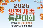 [한국기자연대] 양천구는 구민의 건강 증진과 건전한 여가 활동을 지원하기 위해 11월 1일 지양산에서 ‘2025 양천가족 등산대회’를 개최한다고 밝혔다. 이번 대회는 양천구가 주최하고 양천구체육회가 주관하는 행사로, 가족· 이웃과 함께 숲길을 걸으며 깊어가는 가을 정취도 느끼고 화합도 도모할 수 있도록 마련됐다. 등산대회가 열릴 지양산은 해발 125m의 낮은 산으로 아기자기한 오솔길과 울창한 숲이 잘 조성된 도심 속 자연 명소다. 특히 이번 대회 산행코스인 지양산둘레길은 단풍잎이 아름다워 가을철 가족 단위 방문객이 많이 찾는 곳이다. 등산 구간은 양천중학교부터 까치울터널, 국기봉(반환점), 해맞이봉을 거쳐 유아숲체험장으로 돌아오는 총 4.5km 코스로, 약 1시간 30분 정도 소요된다. 완만한 경사와 평탄한 길 위주로 구성된 이번 코스는 아이부터 어르신까지 온 가족이 함께 걷기에 적합하다. 구간 중간에는 버스킹 공연도 마련되어 가족뿐 아니라 연인, 친구 등과 함께 가을산행의 낭만을 느낄 수 있다. 참가는 양천구민 누구나 가능하며, 선착순 1,000명을 모집한다. 신청은 오는 10월 31