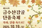 [한국기자연대] 충북 단양군 적성면 금수산 일원에서 열리는 ‘제24회 금수산감골단풍축제’가 오는 19일 상학주차장 일원에서 열린다. ‘가자, 단풍 속으로!’를 슬로건으로 한 이번 축제는 금수산의 오색 단풍을 배경으로 산행·공연·체험·먹거리가 어우러진 풍성한 프로그램을 선보인다. 금수산감골단풍축제추진위원회(위원장 박완수)가 주관하고 단양군이 후원하는 이번 행사는 금수산 단풍 산행을 시작으로 산신제와 개막식, 축하공연 순으로 진행된다. 축하공연에는 정다경·진영·금수봉 등 초대가수가 출연해 흥겨운 무대를 선보이며, MC 안은채의 사회로 즉석 게임과 경품 추첨이 함께 진행된다. 주민이 직접 참여하는 체험부스에서는 ▲떡메치기 ▲곶감 만들기 ▲한지공예 ▲드립커피 시음 ▲가훈 써 주기 ▲단풍잎 책갈피 만들기 등 총 8개 프로그램이 운영된다. 오미자 음료, 강정, 감 디저트, 지역 농·특산물 등 단양의 맛과 멋을 한자리에서 즐길 수 있는 판매부스와 먹거리 장터도 열린다. 이 밖에도 ‘금 한돈을 잡아라!’, ‘도전! 금수산 최강 산악회’ 등 특별 이벤트와 금수산 산행 이벤트가 함께 열려 방
