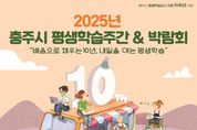 [한국기자연대] 충주시는 평생학습도시 지정 10주년을 맞아 오는 18일부터 24일까지 '2025년 충주시 평생학습주간'을 개최한다고 14일 밝혔다. 올해 행사는 ‘배움으로 채우는 10년, 내일을 여는 평생학습’을 주제로, 시민 누구나 배우고 참여하며 함께 성장하는 시민 참여형 축제로 마련됐다. 행사는 충주시평생학습관과 탄금공원 메인무대를 중심으로 펼쳐지며, ‘배움·성장·미래’ 세 가지 키워드로 한 다채로운 프로그램을 진행한다. 먼저, ‘배움’을 주제로 한 '제8회 충주시평생학습박람회'에서는 10주년 특별공연과 개막식, 유공자 시상식을 비롯해 동아리 발표회, 작품 전시, 체험 부스, 프리마켓, 푸드존 등 시민이 즐길 수 있는 다채로운 현장 행사가 열린다. 다음으로, ‘성장’을 주제로 한 '제9회 충주시 문해 한마당'에서는 몸풀기 웃음체조, 삼행시 한마당, 문해 골든벨(OX퀴즈), 성인문해교육 시화전 등 문해학습자들의 성과를 공유하며 성인문해교육의 가치를 되새긴다. 마지막으로, ‘미래’를 주제로 한 평생학습도시 지정 10주년 기념행사에서는 평생학습 정책포럼, 인문학·미래과학·명사 특강, 8