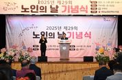 [한국기자연대] 구리시는 노인의 날을 맞아 10월 2일 오전 10시 구리시청 1층 대강당에서 제29회 노인의 날 기념식을 열고 지역 어르신들과 뜻깊은 시간을 가졌다. 이번 행사는 사단법인 대한노인회 구리시지회(지회장 장수용) 주관으로 진행됐으며, 고령사회의 주역인 어르신들의 노고에 감사를 전하고 경로효친 사상을 되새기며 어르신이 존중받는 사회 분위기를 확산하기 위해 마련됐다. 행사는 한국 전통민요 협회 구리시지부의 경기민요 축하공연을 시작으로 유공자 표창, 기념사와 축사 순으로 진행됐으며, 백경현 구리시장, 신동화 구리시의회 의장을 비롯한 주요 내빈과 구리시 거주 어르신, 관계자 등 300여 명이 참석했다. 특히 이날 기념식에서는 100세 이상 장수 어르신들의 건강과 장수를 기원하는 장수 지팡이(청려장) 전달식이 함께 진행됐다. ‘청려장’은 과거 임금이 장수한 신하에게 하사하던 전통 지팡이로, 오늘날에는 노인의 날을 기념해 장수 어르신에게 드리는 상징적인 선물로 이어지고 있다. 백경현 시장은 “우리 사회의 근간이 되어주신 어르신들께 깊은 존경과 감사드린다”라며, “앞으로도 어르신이 행복하고 건강하게