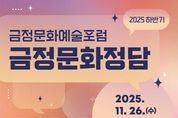 [한국기자연대] 부산시 금정구 금정문화재단은 금정구 예술인과 함께 지역 문화예술의 현안을 공유하고 미래 발전 방향을 모색하기 위한 2025 하반기 금정문화예술포럼 '금정문화정담'을 오는 11월 26일 오후 6시 30분, 아르코공연연습센터@금정 대연습실에서 개최한다고 밝혔다. 상반기 포럼이‘동행: 금정예술가 정답게 주고받는 이야기’를 주제로 지역 문화환경의 변화 속에서 예술 생태계의 현황을 공유하고 네트워킹의 중요성을 강조했다면, 하반기 포럼은 한 해의 활동을 돌아보고 향후 재단과 예술인이 함께 만들어갈 협력과 실천의 방향을 구체화하는 자리가 될 예정이다. 특히 이번 포럼은‘금정구 거주예술인 모집’을 통해 약 100명의 지역 예술가가 참여할 예정이다. 포럼에서는 지역문화 진흥과 예술가 참여 확대를 위한 다양한 의견을 수렴하고, 예술 장르별 교류와 네트워킹을 통해 협력 기반을 강화하는 시간을 갖는다. 또한 참가 예술인에게는 소정의 참석비가 지급될 예정이다. 윤일현 금정문화재단 이사장은 “금정의 예술인들과 함께 만들어가는 포럼이 지역 문화의 밝은 내일을 여는 원동력이 되길 바라며, 예술가들의 생생한 목소