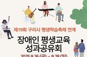 [한국기자연대] 구리시는 장애인 평생학습 도시 지정 3주년을 맞아, 장애인의 학습 성과를 공유하고 시민을 대상으로 장애 인식 개선을 위한 공감 프로그램을 제공하기 위해 오는 9월 26일(금)부터 28일(일)까지 구리한강시민공원에서'장애인 평생교육 성과공유회'를 개최한다고 밝혔다. 이번 행사는 '제19회 구리시 평생학습 축제'와 연계해 진행된다. 성과공유회에서는 장애인과 평생학습 관계자들이 한 해 동안 갈고닦은 학습 결과물을 시민들과 나누며 화합의 장을 마련한다. 구리시 관내 6개 장애인 기관·단체가 참여해 ▲발달장애인 미술 작품 전시 ▲슐런 체험(네덜란드 전통 보드게임, 나무 원판을 미끄러뜨려 점수를 내는 놀이) 및 점자 홍보 ▲까롬 경기(인도 전통 보드게임, 손가락으로 작은 원판을 튕겨 포켓에 넣는 놀이) 체험 ▲장애 인식 개선 캠페인 등을 운영할 예정이다. 아울러, 장애인 평생학습 도시 지정 3주년을 기념하고 장애인 인식 개선을 위해 발달장애인으로 구성된 관악밴드 '드림위드 앙상블'팀이 무대에 올라 아름다운 하모니를 선사한다. 구리시는 장애인의 평생학습 참여기회를 넓히고, 지역 기관과의 네트워크 강화를 통해