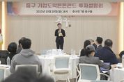 [한국기자연대] 서울 중구가 지난 20일 중구청에서 '중구 기업도약든든펀드 투자설명회'를 열고, 성장 잠재력이 높은 중소·벤처기업을 대상으로 투자 유치와 성장 지원 계획을 밝혔다. 이번 설명회는 중구와 펀드운용사인 비에이파트너스가 공동으로 주관했으며, 지난 8월 중구가 출자한 벤처투자조합 결성 후 225억 규모의 펀드 본격 운용에 맞춰, 유망기업을 발굴하고 기업들의 투자유치 기회를 제공하기 위해 마련됐다. 이날 설명회에는 중구 소재 기업 및 중구로 이전을 희망하는 유망기업 등 약 35개사가 참여했다. 1부 투자설명회에서는 비에이파트너스와 유진투자증권에서 펀드 운용방향과 투자 기준, 2026 벤처투자 시장 및 IPO 전망, 투자 가능성을 높이는 IR 전략 등을 주제로 강연을 펼쳤다. 2부 투자상담에서는 사전 신청을 통해 선정된 기업들이 펀드운용사와 개별 상담을 진행하며 기업별 투자 가능성을 구체적으로 논의했다. 또한 현장에는 기업홍보존이 운영되어 참여기업들의 제품 전시와 시연을 통해 기술력과 아이디어를 직접 선보였다. 이를 통해 투자자와 기업 간 교류의 장이 자연스럽게 형성되며, 지역 내 신산업 생태
