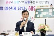 [한국기자연대] 안산시는 지난 20일 해양동 행정복지센터에서 ‘시민의 꿈을 예산에 담다’ 라는 주제로 주민과의 대화를 개최했다고 21일 밝혔다. 이날 대화에서는 해양동 주민 100여 명이 참석한 가운데 생활 불편 해소책, 도시 발전 방향 등 다양한 주제에 대해 의견을 나눴다. 특히 최근 경제자유구역으로 지정된 안산사이언스밸리(ASV)와 신안산선 연장 추진 등 해양동의 주요 현안이 집중적으로 논의됐다. 이 시장은 “안산사이언스밸리는 안산의 산업지도를 바꾸고 첨단 연구개발 중심도시로 도약할 핵심 거점”이라며 “지역 일자리 창출과 경제 활성화는 물론, 한양대 ERICA캠퍼스와 연계한 산학협력 생태계로 조성될 것”이라고 강조했다. 또한 신안산선 연장 사업 의견을 개진한 주민들에게 “신안산선은 안산과 서울을 잇는 핵심 광역 철도망으로, 향후 ASV와 연계된 연장 노선이 반영될 경우, 지역 교통 여건이 획기적으로 개선될 것”이라며 “신안산선 연장을 추진해 안산의 미래 성장 기반을 공고히 다질 것”이라고 말했다. 이후 주민들과 함께 ‘현답버스’를 타고 사동 89블록 경제자유구역 지정지 현장을 직접 방문한 이 시