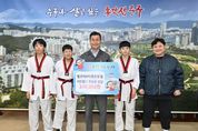 [한국기자연대] 힘찬태비태권도장이 11월 7일 오후 4시 30분 중구청 구청장실을 찾아 울산사회복지공동모금회를 통해 이웃돕기 후원금 30만 원을 전달했다. 이번 전달식에는 김영길 중구청장과 김아롱 힘찬태비태권도장 관장, 태권도장 아동 등 5명이 참석했다. 힘찬태비태권도장은 ‘2025년 종갓집 중구 체육대회’ 입장식(퍼레이드) 행사에 참여해 학성동 주민자치위원회로부터 받은 사례비를 전액 기부했다. 해당 후원금은 지역 내 홀몸 어르신 3명에게 각 10만 원씩 전달될 예정이다. 김아롱 힘찬태비태권도장 관장은 “아이들과 함께 지역 행사에 참여하고 나눔도 실천할 수 있어서 뜻깊다”며 “앞으로도 주변에 희망과 사랑을 전하기 위해 노력하겠다”고 말했다. 김영길 중구청장은 “어려운 이웃을 위해 따뜻한 마음을 모아주셔서 감사드린다”며 “겨울을 앞두고 홀몸 어르신의 생활을 살피고 지원하는 데 후원금을 잘 활용하겠다”고 밝혔다.