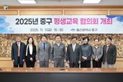 [한국기자연대] 울산 중구가 11월 7일 오후 3시 30분 중구청 소회의실에서 2025년 중구 평생교육협의회를 개최했다. 중구 평생교육협의회는 평생학습 계획 수립·시행 및 제도 개선, 평생교육 유관기관 협력 증진에 관한 의견을 제시하는 기구로, 의장인 김영길 중구청장과 평생교육 전문가, 장애인 평생교육 관계자, 강북교육지원청 관계자 등 12명으로 구성돼 있다. 이날 참석자 8명은 올 한 해 평생학습 사업 성과와 내년도 평생학습 사업 추진계획 등을 살펴보고 다양한 의견을 나눴다. 한편, 중구는 지난 2007년 평생학습도시로 지정된 이후 다양한 평생학습 사업을 운영하며 평생학습 저변 확대에 힘쓰고 있다. 김영길 중구청장은 “평생학습을 통해 지역의 발전을 도모할 수 있도록 위원들의 적극적인 협조를 부탁드린다”며 “앞으로도 언제, 어디서나, 누구나 공평하게 배움의 기회를 누릴 수 있도록 평생학습 문화 확산에 힘쓰겠다”고 밝혔다.