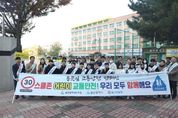 [한국기자연대] 울산광역시교육청은 6일 오전 8시에 울주군 울주명지초등학교 앞 어린이보호구역에서 ‘민·관·경이 함께하는 등굣길 교통안전 홍보 활동(캠페인)’을 펼쳤다. 이번 홍보 활동은 지역사회 협력으로 어린이보호구역 내 교통사고를 예방하고, 학생이 안심하고 학교에 다닐 수 있는 교통안전 문화를 확산하고자 마련됐다. 이날 행사에는 천창수 교육감을 비롯해 김종훈 울산광역시의회 의원, 울산시청, 울주군청, 울산울주경찰서, 강남교육지원청 관계자와 울주명지초등학교 학생과 교직원 등 50여 명이 함께했다. 참여자들은 어깨띠를 두르고 학교 정문에서 출발해 인근 횡단보도와 아파트 단지 주변을 돌며 교통안전 홍보 활동을 벌였다. 무인단속카메라, 신호기, 보도 안전울타리 등 보호구역 내 안전시설을 점검하고, 등굣길 학생들에게 교통안전 홍보 스티커가 부착된 구급함 밴드 세트와 교통안전 안내문을 나눠줬다. 현장에서는 학생들에게 ‘어린이 안전 수칙 일이삼사(일단 멈춤, 이쪽저쪽 살피기, 삼 초 동안 주의, 사고 예방)’ 등의 보행 수칙을 알리고, 시민들에게는 ‘안전속도 5030’, ‘어린이보호구역 횡단보도,