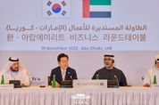 [한국기자연대] 아랍에미리트(UAE)를 국빈 방문한 이재명 대통령은 19일(현지시간) "인공지능 중심의 첨단산업 협력을 통해 미래 성장 동력을 함께 창출하자"고 제시했다. 또 "청정 에너지와 방산 분야 협력을 고도화해 세계 최강국으로 함께 성장할 모멘텀을 확보하자"고도 했다. 이 대통령은 이날 아부다비 소재 한 호텔에서 열린 '한-UAE 비즈니스 라운드 테이블' 행사에 참석해 양국 정부 및 기업의 교류 확대 필요성을 강조하며 이같이 언급했다. 이번 행사는 이 대통령의 UAE 국빈 방문을 계기로 개최된 경제행사로 한국경제인협회, 대한무역투자진흥공사, UAE 대외무역부, 아부다비 상공회의소가 공동 주최했으며, 양국 정부, 기관, 기업 관계자 40여 명이 함께했다. 이 대통령은 기조연설을 통해 "한국과 UAE는 바라카 원전 건설, 아크부대 파견 등으로 서로의 발전을 이끌어오며 진정한 형제의 나라이자 동반자인 라피크(Rafiq)로 거듭나고 있다"라며, "2071년까지 UAE가 세계 최고 국가로 도약하기 위한 최적의 파트너가 한국"임을 강조했다. 아랍어 라피크(Rafiq)는 먼 길을 함께하는 동반자를 의미