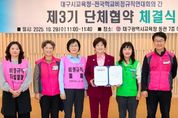 [한국기자연대] 대구시교육청은 2025년 10월 29일 오전 11시, 대구학교비정규직연대회의와 ‘제3기 단체협약 체결식’을 개최한다고 밝혔다. 이는 지난 2022년 12월 27일 제3기 단체교섭을 시작한 후, 올해 9월까지 본교섭 16회, 실무교섭 54회를 거쳐 최종 협약에 이른 것이다. 대구시교육청은 단체교섭 기간 중 우선협약을 통해 2024년 2월 19일 산업재해근로자‘생활안정지원금’제도를 우선 시행하고, 폐암 확진 근로자의 근무환경 개선을 위해 본인 희망에 따라 직종전환(조리종사원 → 특수교육실무원)을 기 시행한 바 있다. 아울러 지난 추석부터 당직경비원의 근무여건 개선을 위해 명절(설, 추석) 기간 중 각 3일간의 유급휴일을 선제적으로 부여했다. 이번에 체결하는 단체협약에는 학생 교육활동 및 현장의 행정 지원을 강화하기 위해 ▲교무실무사 직종통합 및 단계적 상시 전환 추진, ▲방학 중 비근무자인 사서 직종(10일→15일) 및 조리 직종(8일→12일)의 방학 중 근무일수 확대를 추진한다. 교육공무직원의 근무여건 개선 및 복지 향상을 위해 ▲정년퇴직준비휴가 신설(3~5일), ▲난