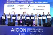 [한국기자연대] 광주광역시는 15일 김대중컨벤션센터에서 열린 ‘아이콘(AICON) 광주 2025’ 개막식에서 국내 인공지능(AI) 유망기업 10개 사와 ‘광주형 인공지능(AI) 비즈니스 업무협약(MOU)’을 체결했다. 이번 협약은 ‘아이콘(AICON) 광주 2025’가 제시한 ‘AI 혁신도시 광주로의 대전환(AX: AI Transformation)’ 비전을 구체화하고 지속가능한 인공지능산업 생태계 구축을 가속화하기 위한 것이다. 광주시는 이를 통해 광주를 인공지능(AI) 기술 실증과 산업 혁신의 거점도시로 한 단계 더 발전시키는 계기가 될 것으로 기대하고 있다. 이날 협약식에는 ▲㈜디지털프레소 ▲브레인웍스㈜ ▲㈜브릭섬 ▲㈜사미텍 ▲㈜씨럽 ▲㈜에이아이캐슬 ▲㈜에이치인텔리전스 ▲㈜엠디에스인텔리전스 ▲위즈팜 ▲㈜폴미 등 10개 기업이 참여했다. 이들 기업은 AI 데이터 분석, 음성·자연어 처리, 콘텐츠 등 다양한 분야에서 기술력과 성장성을 인정받은 혁신 중소기업들이다. 앞으로 광주를 거점으로 기술개발 및 사업화해 지역 산업을 고도화하고 일자리를 창출하는데 힘을 보탤 계획이다. 광