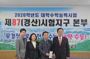 [한국기자연대] 경산교육지원청은 2025년 11월 13일 대학수학능력시험 시행을 앞두고 12일 경산시험지구 업무 추진을 격려하기 위하여 임종식 경상북도교육감이 방문했다고 밝혔다. 경산(87)시험지구에서는 2026학년도 대학수학능력시험에 총 2,591명이 응시하며, 경산교육지원청 본부 관계자들은 경산·청도지역 8개 시험장 98개 시험실에서 차질 없는 시험 진행을 위해 총력을 기울이고 있다. 임종식 경상북도교육감은 업무를 수행하는 담당자들의 노고에 감사를 표했으며 ‘최적의 시험장 환경을 조성하여 모든 학생이 공정하고 안정적으로 시험을 치를 수 있도록 만전을 기하여 지원해주기를 바란다’라고 했다. 이에 정수권 교육장은 ‘시험본부와 모든 시험장에 근무하는 관계자와 긴밀하게 협력하여 모든 수험생이 안전하고 편안하게 수능에 응시할 수 있도록 최선을 다하겠다’라고 했다.