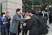 [한국기자연대] 임종식 경북교육감은 13일 아침 2026학년도 대학수학능력시험 제80(포항)지구 제1시험장인 포항고등학교를 찾아 수험생들에게 응원의 메시지를 전했다. 임 교육감은 오전 7시경 포항고등학교 정문 앞에서 수험생들을 맞이하며, “끝까지 최선을 다하면 좋은 결과가 있을 것”이라며 따뜻한 응원의 메시지를 전했다. 긴장된 표정으로 시험장에 들어서는 학생들에게는 “수고 많았다, 평소 실력 그대로 하면 된다”라며 짧지만, 진심 어린 한마디로 긴장을 풀어주었다. 한편, 경북교육청은 올해 수능을 앞두고 수험생들을 응원하기 위해 ‘교육감의 수능 격려 편지’와 대입 수험생 응원 노래 ‘Dream come true 뮤직비디오 영상’을 제작해, 도 교육청 누리집과 공식 유튜브 채널 ‘맛쿨멋쿨TV’를 통해 공개한 바 있다. 이번 시험장 격려 방문은 이러한 응원 캠페인의 현장 확장 프로그램으로 기획됐다. 임 교육감은 오전 포항고등학교 방문 이후, 시험이 끝난 오후에는 안동시에 있는 성의여자고등학교를 찾아 수험생들을 다시 만나 따뜻한 격려와 응원의 메시지를 전하며, 앞으로의 진로와 꿈을 향한 도전에도 힘을 보태겠
