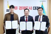 [한국기자연대] 대전시는 28일 대전관광공사, 티엔알컴퍼니(주)와 함께 꿈돌이 누룽지 출시를 위한 공동브랜딩 업무협약을 체결했다. 이번 협약은 도시브랜드 IP(꿈씨패밀리)를 일상 식문화와 접목해 기념·선물형 간식을 개발·유통하고, 관광 소비 촉진과 지역 상권 활성화, 로컬기업과의 상생 생태계를 조성하기 위한 것이다. 이번에 출시되는 ‘꿈돌이 누룽지’는 일상 식품인 누룽지의 담백한 맛과 바삭한 식감을 살리면서, 꿈씨패밀리 세계관과 ‘꿈돌이’ 캐릭터를 담은 박스 패키지로 수집·선물 가치를 높인 것이 특징이다. 편식공장은 대전 동구에 기반을 둔 전통과자 전문 브랜드로, 쫀드기·꽈배기·곡물과자 등 ‘옛 간식’ 라인업을 현대적으로 재해석해 온 곳이다. 공식 채널을 통해 보리·쑥 등 우리 곡물 기반의 제품을 선보이며, 간결한 성분과 일상 간식에 어울리는 부담 없는 용량·구성으로 호응을 얻고 있다. 이장우 대전시장은 “누룽지처럼 누구나 즐기는 일상 먹거리에 지역 캐릭터와 로컬기업의 정성을 더해, 관광과 상권, 일자리를 함께 키우는 선순환이 만들어지길 기대한다”라며 “대전의 로컬브랜딩을 한 단계 끌어올리고, 시민