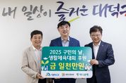 [한국기자연대] 대전 대덕구는 하나은행 충청영업그룹으로부터 ‘2025년 구민의 날’과 ‘대덕구민 체육대회’를 위한 후원금 1000만원을 기탁받았다고 15일 밝혔다. 구는 전달받은 성금을 오는 27일에 개최 예정인 ‘2025년 구민의날’ 과 11월 ‘대덕구민 체육대회’의 운영을 위해 사용할 계획이다. 이동열 하나은행 충청영업그룹 부행장은 “대덕구민이 함께 즐길 수 있는 뜻깊은 행사에 동참하게 돼 기쁘다”며 “앞으로도 지역사회와의 동반 성장을 위해 긴밀한 협력을 이어가겠다”고 전했다. 박종길 대덕구체육회장은 “대덕구민 화합의 장이 될 대회를 준비하는 데 하나은행 충청영업그룹의 후원이 큰 도움이 될 것”이라고 밝혔다. 최충규 대덕구청장은 “하나은행의 후원으로 대덕구민의 날과 대덕구민 체육대회 두 행사가 더욱 풍성하고 의미 있게 치러질 것”이라며 “앞으로도 구민 모두가 즐길 수 있는 화합의 장을 만들어 가는 데 최선을 다하겠다”고 말했다.