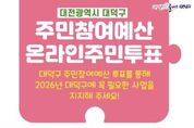 [한국기자연대] 대전 대덕구는 오는 22~30일 2026년 주민참여예산 사업 선정을 위한 온라인 주민투표를 진행한다고 16일 밝혔다. 올해 투표 대상은 온라인 접수와 동별 지역회의를 거쳐 우선순위로 선정된 안건 가운데 소관 부서 적격 검토를 통과한 28개 사업이다. 대덕구 거주민은 물론 대덕구 소재 직장인·학생 모두 투표에 참여할 수 있으며, 대덕구 주민참여예산제 홈페이지에 로그인해 본인인증을 마친 뒤, 관심 사업 최대 3개를 선택해 투표하면 된다. 최종 결과는 주민투표 점수와 ‘예산참여 구민위원회’ 서면심사를 합산해 고득점순으로 확정, 내년도 예산(총 2억 4000만원)에 반영된다. 최충규 대덕구청장은 “주민참여예산제는 구민 참여로 완성되는 제도”라며 “많은 주민이 투표에 동참해 대덕구에 꼭 필요한 사업을 직접 선택해 주시길 바란다”고 말했다. 한편, 대덕구는 주민참여예산 사업선정을 위해 자체 홈페이지를 통한 온라인 사업제안, 투표 절차를 진행해 오고 있다.