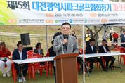 [한국기자연대] 대전시의회 조원휘 의장은 25일 갑천파크골프 1구장(유성구 탑립동)에서 개최된 제15회 대전광역시협회장배 파크골프대회에 참석해 안전한 대회 진행을 기원하며, 일류 체육도시 대전 조성을 위한 정책적 관심과 지원을 약속했다. 이날 대회는 지역을 대표하는 단체·기관장, 임원 및 선수, 시민 등 350여 명이 참석한 가운데 시 협회장의 대회사, 주요내빈 축사, 기념촬영 등의 개회식을 마친 뒤 남녀와 시니어·일반부로 나눠 18홀 스트로크 방식의 본격적인 대회로 이어졌다. 조원휘 의장은 “대전에는 유등천, 갑천, 을미기공원 등 6곳, 총 99홀의 파크골프장이 운영되고 있으며, 시민들의 참여가 늘면서 이제는 파크골프가 대전의 대표적 생활체육으로 자리잡았다”면서, “시민들의 관심과 수요가 커지는 만큼 동구 용운동에 2026년 12월까지 4,600여 평, 성북동에 2029년까지 최대 90홀 규모의 파크골프장이 조성되는 등 대전시의회는 시민들의 체육인프라 조성에 많은 노력을 기울이고 있고, 앞으로도 시민 모두가 파크골프를 비롯한 다양한 생활체육을 언제, 어디서나 즐길 수 있도록 의회 본연의 역할에 최선을 다하겠다”고 말했다.