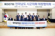 [한국기자연대] 전라남도 시군 의회 의장협의회는 지난 10월 1일 영광군의회에서 개최된 제307회 정례회의에서“광주광역권 개발제한구역 전면 해제 촉구 건의안”을 만장일치로 채택했다. 이번 건의문은 장성군의회 심민섭 의장이 발의한 것으로 광주광역권을 둘러싼 4개 시 군(장성, 담양, 화순, 나주)에 수십년간 과도한 개발제한구역을 지정하면서 수도권에는 과밀억제를 명분으로 개발제한구역 제도를 더욱 엄격히 적용해야 하나, 오히려 수도권을 중심으로 해제를 해주면서도 비수도권인 광주광역권에는 여전히 경직되고 일률적인 규제를 강요하는 것은 명백한 지역 역차별이자 지방시대 국가균형발전 정책에도 역행하는 조치라며 정부에 전면 해제를 강력히 요구했다. 건의문에는 ▲ 광주광역권 개발제한구역 전면 해제 ▲ 지역발전에 대한 사항을 지방정부가 결정할 수 있도록 모든 권한을 자치단체에 이양할 것을 촉구하는 내용을 담고 있으며, 건의문을 발의한 심민섭 의장은“광주광역권 개발제한구역은 시대적 역할을 다한 만큼, 지역간 균형발전을 실현하고 나아가 국가 전체의 지속가능한 발전을 도모하기 위해서 개발제한구역 전면 해제가 반드시 필요하다.”고 강조했다. &nb