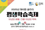 [한국기자연대] 공주시는 오는 8일부터 14일까지 행복누림 일원에서 ‘10년의 배움, 다음 10년의 약속’을 주제로 제10회 공주시 평생학습축제를 개최한다. 올해 축제는 공주시가 평생학습도시로 지정된 지 10주년을 맞아 마련된 행사로, 시민이 배우고 나누는 학습공동체의 가치를 확산하고 탄소중립 실천과 지역 중심의 학습 확장을 실현하는 지속가능한 평생학습축제로 진행된다. 개회식은 11월 8일 오후 2시 행복누림 5층 대강당에서 열리며, 식전공연 ‘박동진 판소리 꿈나무’를 시작으로 평생학습 유공자 표창과 10주년 기념 퍼포먼스가 이어진다. 이후 공주시 평생학습동아리의 공연과 체험 프로그램이 진행돼 축제의 열기를 더할 예정이다. 행복누림 1층 마주침공간에서는 탄소중립 실천을 위한 친환경 체험 프로그램이 운영되며, 2층부터 5층까지는 평생학습 관련 기관과 동아리들이 운영하는 체험 및 전시 부스가 마련된다. 또한 5층 대강당에서는 다채로운 공연이 펼쳐진다. 특히 올해는 평생학습도시 지정 10주년을 기념해 각 읍면 평생학습센터가 주체가 되어 11일부터 13일까지 3일간 ‘읍면 평생학습