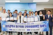 [한국기자연대] 광주 동구의회는 주민들의 다양한 의견을 의정에 반영하기 위해 『광주광역시 동구의회 구민의정참여단』을 공개모집하고 지난 2일 참여단원 7명에게 위촉장을 전달하며 소통 행보를 본격화했다. 이날 위촉식에는 공개모집을 통해 선발된 구민의정참여단원들에게 위촉장을 수여하고, 향후 활동 방향과 구체적인 운영계획을 공유했다. 앞으로 참여단은 동구 지역의 각종 현안 제안, 개선 사항 건의, 의회 발전 아이디어 발굴 등 다양한 분야에서 의견을 개진하게 된다. 제안된 내용은 의회 검토를 거쳐 의정 활동에 반영되거나, 집행부 견제·감시 또는 지원을 위한 정책 자료로 활동될 예정이다. 문선화 의장은 “구민의정참여단 운영을 통해 현장의 목소리를 의정에 접목시킬 수 있을 것으로 기대한다”며 “앞으로도 동구민의 생활 현장을 꼼꼼히 살피고, 의견을 경청하며 함께 해결책을 모색하는 열린 의회를 실현하기 위해 노력하겠다‘고 강조했다. 한편 동구의회는 2023년부터 구민의정참여단 제도를 운영중이며, 생활속 불편 사항이나 문제점에 대한 현실적·창의적 아이디어를 발굴해 의정 발전에 기여하고 있다.