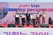 [한국기자연대] 충남도는 31일 논산 시민운동장에서 지체장애인의 권익신장과 화합을 다지는 ‘2025 충남지체장애인의 날 기념식 및 한마음대회’를 개최했다. 충남지체장애인협회가 주최하고 충남지체장애인협회 논산시지회(지회장 손병복)가 주관한 기념식에는 김태흠 지사를 비롯해 백성현 논산시장, 이건휘 (사)한국지체장애인협회충남협회장, 손병복 충남협회 논산시지회장, 도민 등 2500여 명이 참석해 자리를 빛냈다. 행사는 축하공연을 시작으로 유공자 표창 및 감사패 수여, 전동보장구 및 지정기탁금전달, 기념사 및 축사 등 순으로 진행됐다. 표창 및 감사패는 장애인의 권익신장과 지역사회의 복지증진에 기여한 17명이 도지사, 도의회의장, 교육감, 경찰청장 표창 등을 수상했다. 김 지사는 유공자들에게 표창장을 직접 수여한 뒤 기념사를 통해 “장애인의 생활이 비장애인과 차이가 없을수록 선진국이라고 생각한다”며 “장애인과 비장애인 구분 없이 어우러져 살아갈 수 있도록 전국 최고의 장애인 친화도시 충남을 만들어 나가겠다”고 강조했다. 한편, ‘지체장애인의 날’은 (사)한국지체장애인협회가 매년 11월 11일