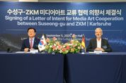 [한국기자연대] 대구 수성구는 해외 교류 도시인 독일 카를스루에시와 함께 세계적인 미디어아트 기관인 ZKM(Zentrum für Kunst und Medien), 쿤스트할레 미술관 대표단이 9월 2일부터 7일까지 6일간 수성구를 공식 방문했다고 밝혔다. 이번 방문은 수성구가 추진 중인 연호지구 미디어아트 미술관 조성 사업과 연계하여 협력 기반을 다지고 국제적 위상을 확보하기 위해 마련됐다. 대표단은 칼라스퀘어 미디어아트 전시관 조성 대상지, 연호지구 미디어아트 미술관 조성 대상지, 들안시각예술센터 조성 현장 등을 직접 둘러보며 사업 추진 현황을 공유받았다. 또한 간송미술관, 대구미술관 등 지역 문화예술 인프라도 방문하여 지역 예술 환경에 대한 이해를 넓히고, 쿤스트할레 미술관과의 작가 및 작품 교류에 대해서도 논의했다. 특히, 수성구와 ZKM은 미디어아트 분야 국제적 교류 협력 체계 구축을 위한 ‘미디어아트 교류 협력의향서(LOI)’를 체결하고, ▲연호지구 미디어아트 미술관 조성 ▲국내 신진작가 발굴 플랫폼 구축 등에 대한 협력을 논의해 나가기로 했다. 연호지구 저수지 인접 공원에 들어