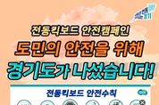 [한국기자연대] 경기도는 11월 한 달간 경기도의회, 경기도교육청, 경기 남ㆍ북부경찰청, 경기도교통연수원, 한국도로교통공단, 시군 등 유관기관과 함께 전동킥보드 안전문화 합동캠페인을 추진한다. 도는 전동킥보드 주요 사고 다발지역 및 유동인구 밀집 지역을 중심으로 유관기관 및 시민단체와 연계해 전동킥보드 필수 안전수칙이 담긴 홍보물을 배부하고 경찰과 협력해 현장 계도 활동도 병행한다. 시군별 전광판, 현수막 등 지역 홍보 매체를 적극 활용해 전동킥보드 안전수칙 홍보도 적극 확대할 계획이다. 특히 전동킥보드 사고 발생의 주요 원인인 면허 자격, 이용 연령, 안전모 착용, 동승 금지 의무 등을 집중적으로 안내하고, 교육청과 협력해 청소년 대상 교육도 강화할 방침이다. 윤태완 경기도 광역교통정책과장은 “이번 안전캠페인은 전동킥보드 안전이용 문화가 안착되는 계기가 될 것”이라며 “도에서는 캠페인 기간이 끝나더라도, 경찰청·교육청 등 유관기관과 지속 협력해 전동킥보드 안전사고 예방에 총력을 다할 계획이다”고 말했다. 현재 경기도 내 운영 중인 공유 전동킥보드는 6만 7,866대로 31개 시군 전역