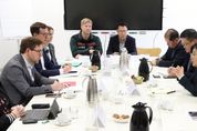 [한국기자연대] 성남시는 11월 5일 오전 10시 20분 시청 제1회의실에서 법인택시 노‧사‧정이 함께하는 간담회를 열고, 지역 택시업계의 현안을 공유하며 발전 방향을 논의했다. 이날 간담회에는 신상진 성남시장을 비롯해 전택노련경기동부지역지부 김준희 지부장 등 관계자 12명과 법인택시업체 대표 16명 등 총 30여 명이 참석해 근로환경 개선, 제도적 지원, 운수종사자 복지 확대 방안 등을 폭넓게 논의했다. 신상진 시장은 인사말에서 “경기침체와 인력난 등 어려운 여건 속에서도 시민의 안전한 이동을 위해 헌신하고 있는 택시업계의 노고에 감사드린다”며 “성남시는 업계의 경쟁력 강화와 종사자 복지 향상을 위해 지속적인 지원을 이어가겠다”고 밝혔다. 이날 간담회에서는 법인택시운송사업 발전에 기여한 공로를 인정받아 신상진 성남시장에게 감사패가 전달됐다. 감사패는 △경기도택시운송사업조합(이사장 심재천) △전국택시노동조합연맹 경기지역본부(의장 이용호) △전국민주택시노동조합(의장 이종준)에서 각각 수여했다. 심재천 경기도택시운송사업조합 이사장은 “최악의 경영난을 겪고 있는 택시업계에 감차보상사업과 법인택시 운전자