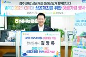 [한국기자연대] 김영록 전라남도지사는 26일 APEC 정상회의 성공적 개최를 기원하고 영호남 상생협력을 위해 ‘APEC 성공 기원 특별예금’ 가입 릴레이 캠페인에 참여했다. 이번 특별예금은 APEC 정상회의 성공을 응원하는 전 국민 참여형 금융상품으로, 가입 기간은 1년이다. 1인당 100만 원 이상 3천만 원 이내에서 가입할 수 있다. 김영록 지사는 이날 NH농협은행 전남도청지점을 방문해 예금에 가입하고, “APEC 정상회의의 성공적 개최를 진심으로 응원한다”며 “앞으로도 다양한 분야에서 영호남 상생협력을 적극 추진하겠다”고 말했다. 김영록 지사의 예금 가입은 개최지인 경상북도를 제외한 전국 광역지자체장 최초로, 타 지자체장들의 가입 릴레이 참여 분위기를 조성하는 데 기여할 것으로 기대된다.