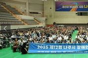 [한국기자연대] 전라남도 나주시가 장애인과 비장애인이 함께 어울리며 소통하는 화합의 장 ‘제12회 나주시 장애인 한마당 큰잔치’를 성황리에 개최했다. 나주시는 최근 종합스포츠파크 다목적체육관에서 나주장애인연합회(회장 송종운) 주관으로 행사를 열고 장애인과 비장애인, 자원봉사자 등 800여 명이 참여한 가운데 기념식, 축하공연, 장기자랑까지 총 2부 순서로 진행했다고 25일 밝혔다. 이번 행사는 모범장애인과 장애인복지 유공자 11명에 대한 표창 수여와 더불어 다채로운 공연과 체험 프로그램으로 의미를 더했다. 기념식은 시각장애인협회 나주시지회 이도전 지회장의 개회선언을 시작으로 모범장애인 및 장애인복지 유공자 표창, 내외빈 축사 등으로 이어졌다. 식전 공연에서는 나주시장애인주간이용센터와 성산원(장애인거주시설) 이용인들이 무대를 꾸며 즐거운 분위기를 더했다. 또한 행사장 부대 프로그램으로 키오스크 체험, 인생사진 촬영, 혈관나이 측정, 원예체험(전남장애인복지관), 메이크업 체험(아띠공방), 장애인 보장구 무상수리(휠앤스) 등이 운영돼 참가자들의 큰 호응을 얻었다. 한편 나주시는