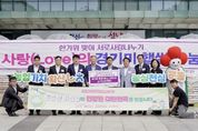 [한국기자연대] NH농협 성남시지부는 어려운 이웃에게 전달해 달라며 1억9000만원 상당의 쌀 5000포대(포대당 10㎏)를 9월 29일 성남시에 맡겼다. 시는 이날 오전 11시 시청광장에서 신상진 성남시장과 양흥식 농협 성남시지부장, 김효진 경기 사회복지공동모금회 사무처장 등이 참석한 가운데 ‘2025년 한가위 맞이 서로 사랑 나누기 쌀 전달식’을 했다. 받은 쌀은 성남지역 50개 동 기초생활보장 수급자와 저소득층에 1포씩 전달하기로 했다. NH농협 성남시지부는 2012년부터 추석 명절 때마다 저소득층을 위한 쌀을 성남시에 기탁해 오고 있다. 2023년부턴 쌀, 김치, 성금 등 다양한 형태로 나눔을 실천해 지역 사회에 온기를 전하고 있다.