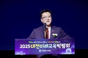 [한국기자연대] 대전시의회 조원휘 의장은 25일 대전컨벤션센터(DCC)에서 개최된 2025 대전미래교육박람회 개막식에 참석해 미래를 선도해 나가는 교육혁신 선도 도시, 대전을 위한 정책적 관심과 지원을 약속했다. 이날 행사는 지역을 대표하는 단체·기관장, 학교장, 학교운영위원장 등 650여 명이 참석한 가운데 대전미래교육 영상 시청을 시작으로 주요내빈 축사, 커팅식 순으로 진행됐고, 개회식을 마친 뒤에는 ‘AI 시대의 삶과 앎’이란 주제의 기조 강연과 박람회 투어가 이어졌다. 조원휘 의장은 “이번 박람회로 AI와 디지털 대전환이라는 거대한 물결 앞에서 우리 아이들을 미래사회 주역으로 키우겠다는 대전교육의 확고한 의지를 확인할 수 있었고, 여러 미래형 수업 모델 등을 통해 대전이 교육혁신 선도 도시로 자리매김했음을 증명했다”면서, “대전시의회는 앞으로도 AI·디지털 기반 수업 확충 등 현장에서 실질적 성과로 이어지도록 적극 지원하면서 미래 교육을 강하게 뒷받침하겠다”고 말했다.