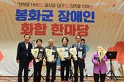 [한국기자연대] 봉화군은 지난 23일 봉화군민회관에서 경북시각장애인연합회 봉화지회 주관으로 ‘제18회 봉화군 장애인 화합한마당’ 행사를 개최했다. 이번 행사는 제45주년 장애인의 날을 기념해 ‘행복을 바라봄, 일상을 담아봄, 희망을 이어봄’이란 슬로건 아래 장애에 대한 이해를 높이고, 장애인과 비장애인이 함께 공감하고 소통하는 장을 마련하고자 열렸다. 아울러 유공자 표창을 통해 장애인과 자원봉사자의 사기진작을 도모했다. 이날 행사에는 지역 기관단체장 및 관내 장애인 및 700여 명이 참석한 가운데 성황리에 진행됐다. 식전 행사인 오카리나 연주공연을 시작으로 1부 개회식과 시상식, 대회사에 이어 2부 축하공연, 경품추첨 순으로 진행됐으며 참가자들은 화합과 소통의 의미를 되새기며 즐거운 시간을 보냈다. 행사에 참여한 장애인들은 “시간이 갈수록 장애인에 대한 편견이 조금씩 줄어들고 있음을 느낀다.”면서 “이런 행사가 더 많아져서 장애인과 비장애인이 자연스럽게 소통할 수 있는 기회가 늘어났으면 좋겠다.”라고 말했다. 한편 박현국 봉화군수는 “장애인 화합 한마당 행사를 통해 장애인에