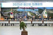 [한국기자연대] 군위군 기관․단체장 모임인 청산회(회장 : 김진열 군위군수)가 9월 24일 군청 대회의실에서 하반기 정례회의를 개최했다. 이날 회의에서는 ▲거점학교 구축 및 향후 계획 ▲대구경북신공항 건설사업 추진 현황 ▲대구 도심 군부대 통합 이전 추진 ▲군위역 이용 활성화 방안 등 주요 지역 현안을 폭넓게 논의했다. 또한 회계 결산과 함께 추석맞이 사회복지시설 위문 안건을 의결했다. 이에 따라 군위군 소재 사회복지시설 6개소에 총 300만 원 상당의 생필품을 지원하며, 이웃사랑 실천과 나눔 문화 확산에 앞장서기로 했다. 김진열 회장은 인사말을 통해 “늘 바른 길을 제시하고 적극적으로 협력해주신 기관·단체장님들 덕분에 군위군이 변화와 혁신을 이어가고 있다”며, “지역의 리더들이 한자리에 모인 만큼 풍부한 경험과 식견으로 군위의 발전에 힘을 보태주시길 바란다”고 당부했다.