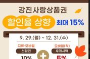 [한국기자연대] 강진군은 9월29일부터 12월31일까지 강진사랑상품권 할인율을 상향 조정한다고 24일 밝혔다. 추석 명절 맞이 및 지역경제 회복을 위해 마련된 할인 혜택은 지류 및 모바일(착) 강진사랑상품권 구매 시 선할인 10%이며, 기간 중 모바일(착) 사용 시 후캐시백 적립 5%로 총 15% 할인 혜택을 받을 수 있다. 구매 한도는 월 70만 원으로 동일하다. 다만, 모바일(착) 상품권 후캐시백은 매월 1억 원을 투입할 예정으로 예산소진 시 운영이 종료되므로 혜택을 받기 위해서는 빠르게 소비하는 것이 유리하다. 관내 모바일(착) 상품권은 음식점, 전통시장, 주유소, 미용실, 병원, 마트 등 지역 내 1,600여 개의 가맹점에서 사용할 수 있다. 자세한 가맹점 안내는 강진군 홈페이지 및 지역상품권 chak(앱) ‘가맹점 찾기’에서 확인할 수 있다. 모바일(착) 상품권 한 이용자는 “상품권을 충전할 때 10% 할인받는 것도 좋지만, 결제할 때마다 캐시백을 적립해 주니 쓰는 재미가 있어서 착을 더 이용한다”며 “명절 연휴뿐만 아니라 3개월동안 15% 할인혜택을 받을 수 있다