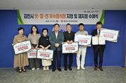[한국기자연대] 김천시는 지난 9월 22일 시청 2층 브리핑실에서 2025년 '맛·깔·친 우수음식점' 신규 및 재지정 업소 지정서 수여식을 개최했다. 2019년도부터 시행된 맛·깔·친(맛있고 깔끔하고 친절한 업소) 우수음식점 지정은 김천시를 대표하는 음식점을 발굴․육성하는 사업으로, 김천시 조례에 의해 임명된 우수음식점 발굴·육성위원회의 현장 심사를 통해 맛, 위생, 친절도 등을 종합적으로 평가하여 대상 업소를 선정한다. 올해 신규 지정된 업소는 다양한 약재를 우려낸 육수를 사용한 해장국 전문점인 '석불해장전문점', 활력 증진에 좋은 장어구이 맛집 '착한숯불장어', 미국 현지에 온 듯한 개성 있는 인테리어에 수제 햄버거를 맛볼 수 있는 '미트미트', 특제 모링가 소스로 만든 제육볶음이 일품인 대덕면 소재의 '중원깜돈식당'까지 총 4개소이다. 지정된 지 2년이 경과된 업소에 대해서도 평가를 통해 재지정 여부를 결정하며, 올해는 '우리반상시월', '안동황소식육식당' 총 2개 업소가 재지정됐다. 신규 및 재지정 업소에 대해서는 지정서 및 현판 수여, 시설개선보수비 지원, 시청 홈페이지‧맛집 책자‧온라인