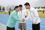 [한국기자연대] 이상일 용인특례시장은 17일 일본 도쿄 국립경기장에서 열린 2025 세계육상선수권대회 남자 높이뛰기 결선에서 은메달을 차지한 우상혁 선수에게 전화를 걸어 축하와 격려의 뜻을 전했다. 우상혁 선수는 16일 저녁에 열린 남자 높이뛰기 결선에서 올 시즌 개인 최고 기록과 같은 2m34를 넘어 은메달을 획득했다. 금메달은 2m36을 기록한 지난해 파리올림픽 챔피언 해미시 커(뉴질랜드)에게 돌아갔다. 우 선수는 올해 국제대회 7연승을 기록하며 최고의 기량을 선보였으나, 지난달 종아리 근막 손상이란 부상을 당해 최상의 컨디션이 유지되지 못한 상태에서 경기에 나섰다. 그럼에도 우 선수는 세계 최고선수들이 겨루는 큰 대회에서 은메달을 따냈다. 이로써 우 선수는 2022년 미국 유진 대회 은메달에 이어 한국 선수로는 최초로 세계육상선수권에서 2개의 메달을 보유한 선수로 기록됐다. 이상일 시장은 우 선수와의 통화에서 “지난달 부상으로 발목에 통증이 있는 상태에서 대회에 나간 걸로 아는 데 그럼에도 불구하고 최선을 다해 값진 은메달을 획득한 것은 매우 감동적"이라며 “늘 밝은 모습으로 국민들에게 기쁨을