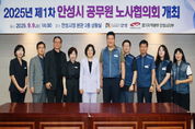 [한국기자연대] 안성시는 지난 9일 시청 2층 상황실에서 '2025년 제1차 공무원 노사협의회'를 개최했다고 밝혔다. 이번 노사협의회는 김보라 안성시장과 함은규 지부장을 비롯해 노사위원 10명이 참석한 가운데 담당 부서별 검토를 마친 6개 안건에 대해 논의했다. 노사 양측 위원은 ▲안성맞춤 소그룹 벤치마킹 프로그램 제안 ▲직급별 업무분장 가이드라인 제정 ▲휴일근무 직원 동의 여부 단체교섭 사항 이행점검 ▲행사 차출 지급경비 일괄 예산편성 및 지급 ▲전국공무원노동조합 안성시지부 운영비 지원 ▲후생복지사업 개선 및 신규사업 제안 등 공직자 보호와 직원 복지를 위한 다양한 의견을 교환했으며, 시에서는 관련 부서의 신중한 검토를 통해 향후 개선 방안을 적극 반영하기로 합의했다. 함은규 전국공무원노동조합 안성시지부장은 “이번 협의회를 통해 공직사회가 당면한 문제들을 다시금 확인하고, 노사가 함께 대응할 수 있는 공감대를 형성하는 계기가 됐다”며 “앞으로도 공직자의 권익 보호와 복지 증진을 위해 협력해 나가겠다”고 말했다. 김보라 안성시장은 “직원들의 근무환경 개선과 복지 증진을 위해 노조가 활발하게 활동하고