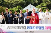 [한국기자연대] 용인특례시는 11일 양지면 은이성지 입구에서 ‘청년김대건길’ 명예도로명판 제막식을 열었다. 이번 제막식은 ‘김대건 신부 은이·골배마실 정주 200주년 현양 개막미사’와 연계해 진행됐다. 행사에는 이상일 시장과 문희종 요한세례자 수원교구 총대리 주교, 시의원, 지역 성직자, 시민 등 200여 명이 참석해 뜻깊은 순간을 함께했다. ‘청년김대건길’은 국도 42호선 남곡2리 입구에서 은이성지까지 약 2.9km 구간에 지정됐으며, 총 3곳에 명예도로명판이 설치됐다. 실제 도로명주소에는 영향을 주지 않는 상징적인 명칭으로, 우리나라 최초 사제 김대건 신부를 기리고 용인의 문화관광 자원을 알리기 위해 마련됐다. 김대건 신부는 1827년 용인으로 이주해 성장했고, 1836년 은이공소에서 세례를 받은 후 마카오·상하이에서 신학을 수학했다. 1845년 사제 서품을 받고 은이·골배마실 일대에서 사목했으며, 1846년 순교했다. 이상일 시장은 기념사를 통해 “은이성지를 중심으로 양방향 2.9km 구간에 역사적으로도 의미가 깊은 ‘청년김대건길’ 명예도로명을 부여하고 현판을 제막하게