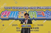 [한국기자연대] 김병수 시장은 9월 19일 골드밸리 중앙체육공원에서 열린 ‘2025 김포상공회의소 상생·이업종교류협의회 한마음 워크숍’에 참석해 지역 기업인들을 격려하고 축하했다. 이날 행사는 비가 내리는 궂은 날씨 속에서도 200여 명의 기업인과 관계자가 참여해 열띤 분위기 속에 행사가 진행됐다. 이번 워크숍은 김포상공회의소 상생‧이업종 6개 교류회 및 관리자협의회를 대상으로 감사패 및 지원금 전달식을 진행하고, 이어 6개 교류회의 친교 단합 체육행사로 이어지며 업종 간 네트워킹을 강화하는 데 초점을 맞췄다. 김병수 시장은 축사를 통해 “관세 문제와 글로벌 경기 둔화 등 어려운 대외경제 여건 속에서도 현장에서 묵묵히 기업활동을 이어가고 있는 기업인 여러분의 노력에 깊은 감사를 전한다”며 “기반시설 확충 등 김포의 발전을 토대로 기업하기 좋은 도시 김포를 완성해 나가겠다”고 밝혔다. 김포상공회의소 상생·이업종교류협의회는 업종 간 경계를 넘어 정보교류와 협력 기반을 마련하는 네트워크로서, 이번 워크숍을 통해 회원사 간 교류가 확대되어 지역경제 활성화에 기여할 전망이다.