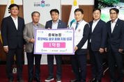 [한국기자연대] 충북도는 농협중앙회 충북본부가 8일, 지난 7월 집중호우로 큰 피해를 입은 도민 지원과 피해 복구를 위해 써달라며 성금 1억 원을 기탁했다고 밝혔다. 이날 기탁식은 도청 여는마당에서 진행됐으며, 김영환 충북도지사와 장현봉 대한적십자사 충북지사 회장, 이용선 농협중앙회 충북본부 총괄본부장 등 관계자들이 참석한 가운데 이루어졌다. 이용선 총괄본부장은 “이번 성금이 폭우로 피해를 입은 도민들에게 조금이나마 힘이 되길 바란다”며, “앞으로도 지역사회와 함께 어려움을 극복하고 상생하는 금융기관이 되겠다”고 전했다. 김영환 지사는 “어려운 시기에 도민들을 위해 따뜻한 나눔을 실천해 주신 충북농협에 깊이 감사드린다.”면서, “성금은 피해 주민들의 생활 안전과 복구 지원에 소중히 사용하겠다.”고 말했다.