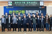 [한국기자연대] 완주군의 미래성장동력 확보를 위한 핵심 의제인 분산에너지와 피지컬 AI를 논의하기 위해 완주연구원이 10일 정책세미나를 열고 지역 전략 마련에 나섰다. 완주연구원은 지난해 지방 거점대학인 전북대학교와 완주군이 글로컬 대학 30 업무협약에 따라 군 지역 발전 및 현안 해결을 위해 지·산·학·연 협력 네트워크를 구축해 설립한 전문 정책·연구기관이다. 이날, 완주군청 대회의실에서 열린 세미나에는 에너지 및 AI 분야 전문가, 대학 관계자, 공무원 등 100여 명이 참석해 ‘완주형 분산에너지 특화지역 지정 추진방안’과 ‘피지컬 AI와 제조업 혁신’을 주제로 미래 성장전략을 폭넓게 논의했다. 주요 발표에서는 ▲분산에너지 체계 도입 필요성과 타 지역 사례, 지역 실증 기반 마련 ▲피지컬 AI를 활용한 제조 산업·서비스 혁신 등 적용 사례 등 완주형 에너지 자립과 피지컬AI와 제조업 융합 전략 등이 다뤄졌으며, 토론자들은 실효성 있는 정책 실행을 위한 제도 개선 및 협력체계 구축의 중요성을 강조했다. 유희태 완주군수는 “분산에너지와 인공지능(AI)은 더 이상 먼 미래 기술이 아니라 지역 경쟁력을