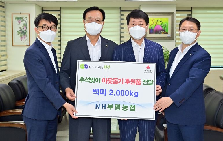 차준택 구청장은 “매해 명절마다 지역 사회 내 어려운 이웃들을 위해 따뜻한 나눔을 실천해 준 부평농협에 감사하다”며 “성품은 도움이 필요한 이웃에게 꼭 전달하겠다”고 말했다.