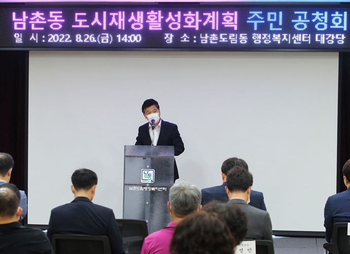 이날 남촌도림동 행정복지센터에서 열린 공청회에는 지역주민과 관계 공무원, 구청장, 국회의원, 구의원, 시의원 등 50여명이 참석했다.
