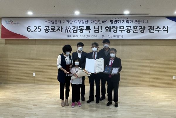 [한국기자연대] 안산시는 6·25 참전유공자인 고(故) 김동록 하사의 유족 김의섭씨에게 화랑무공훈장을 전수했다고 31일 밝혔다.